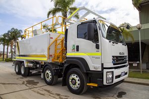 The back end, or the front end of this brand new Isuzu Water Truck.