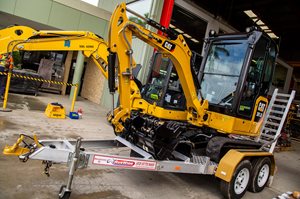 It may be small in size but this kitten is really big on features, in fact, it's the only 1.8t excavator that comes with a fully enclosed, pressurized, airconditioned cab to protect the operator from outside noise, dust, and the weather. Oh, and it also comes with its own little trailer. We've bought 3 of these little beauties, one in Melbourne, and one in Perth, plus we've got another one coming in Brisbane.
