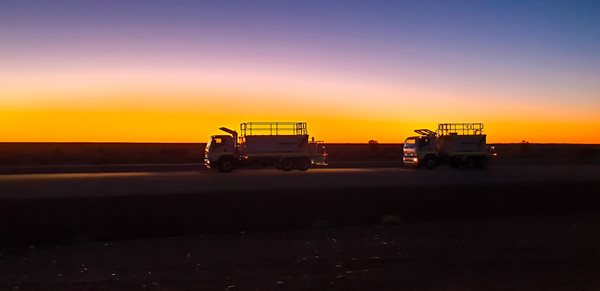 Early Saturday morning, with Keith at the wheel of our brand new Isuzu Service Truck and Steve driving a brand new Isuzu Water Truck, the guys rolled out of the gates of the Brooks Hire Canning Vale branch for a long haul delivery. The first leg of their jouney spanned over 1200 kilometres, taking them to Newman, Western Australia. After delivering the Water Truck, the guys took a well earned overnight break before hitting the road the next morning - desitination Port Hedland, another 540kms north west.