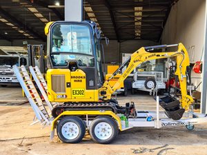 Why so cool? It's the only one of its size that comes with a fully enclosed, pressurized, airconditioned cab to protect the operator from outside noise, dust, and the weather. Oh, and it also comes with its own little trailer.