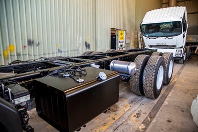 These 2 Isuzu water trucks are being rust proofed before they're fitted out with water tanks. Brooks Hire employs a large team of qualified service technicians to keep our machines in tip-top condition, that's why you're better being with Brooks.
